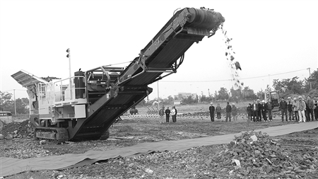近兩年鄭州市政府加緊了城中村改造項(xiàng)目的施工力度,多個(gè)區(qū)域的城中村改造項(xiàng)目同時(shí)進(jìn)行,建筑垃圾的產(chǎn)生量陡增,但是激增的建筑垃圾并沒有成為阻礙城市發(fā)展的絆腳石,這是因?yàn)猷嵵菔幸呀?jīng)推進(jìn)大型移動(dòng)破碎站設(shè)備在建筑垃圾場(chǎng)地的施工。